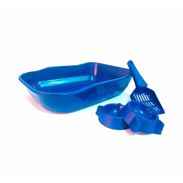 - Vem com uma pazinha, dois comedouros com tamanho ideal e quantidade na dose certa de ração para o gato;