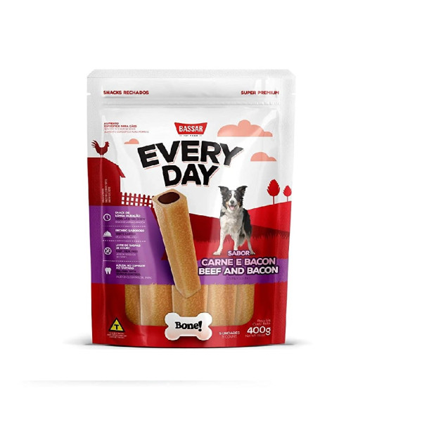 Os Snacks Bassar Everyday Bone Carne e Bacon para Cães são alimentos Super Premium, bem recheados e bem saborosos. Devem ser fornecidos ao seu amiguinho em forma de mimo. Como recompensa devido a um bom comportamento ou oferecido aos peludinhos em treinamento.