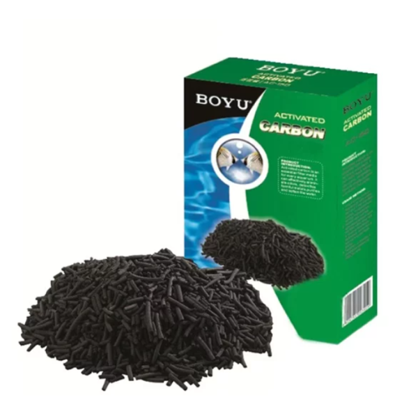 O carvão Ativado Boyu é um carvão em formato de pellets, facilita a passagem da água e melhora a performance do material filtrante.