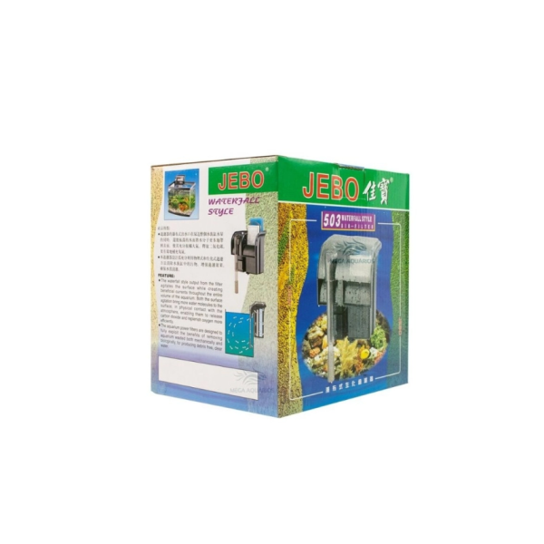 O Jebo 503 é garantia e segurança para uma filtragem otimizada em aquários de médio porte em geral. Realiza filtragem química e física com carvão e perlon. Sua manutenção periódica a cada 2 meses garantirá um funcionamento regular e vida longa ao filtro.