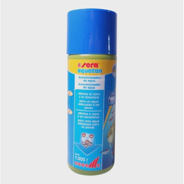 Água cristalina, adequada para os peixes, no aquário de água doce e salgada. Sera aquatan com a nova fórmula sera Bio-Protect acondiciona imediatamente a água da torneira, de modo a transformá-la numa água doce ou salgada que corresponde às necessidades dos peixes. Os peixes sentem-se visivelmente melhor numa água natural, saudável e clara.