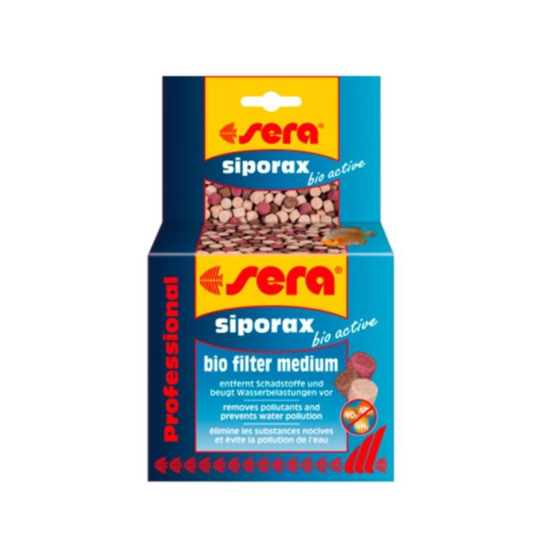 Sera Siporax BioActive é uma mídia filtrante biológica especial para remoção de poluentes como amônia e nitrito, também acelerando a decomposição de detritos em aquários ornamentais de água doce ou salgada.