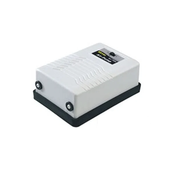 Compressor de ar para oxigenação de aquários com duas saídas.