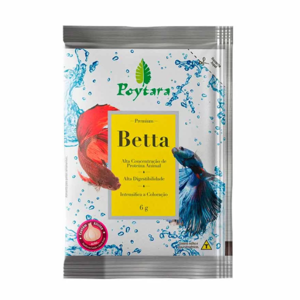 Os peixes betta são supercoloridos e necessitam de um alimento que mantenha a cor e favoreça a saúde em geral. O Poytara Betta é uma comida completa que garante mais longevidade ao peixinho.