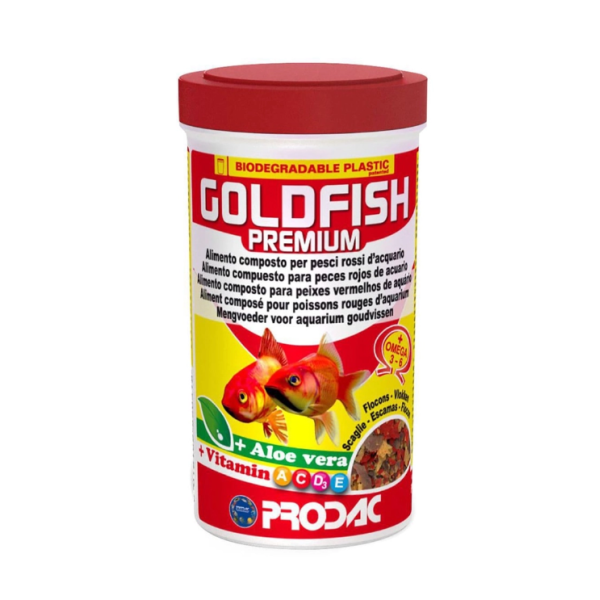 Alimento completo em flocos para peixes de água fria do tipo carassius de aquário.