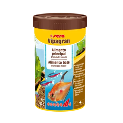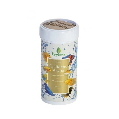 Alimento composto em flocos com alto teor de farinha vegetal formulado para satisfazer as necessidades nutricionais de peixes tropicais herbívoros de água doce.