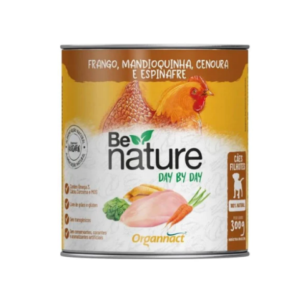 Ração Úmida Lata Be Nature Frango, Mandioquinha, Cenoura e Espinafre Para Cães Filhotes 300g