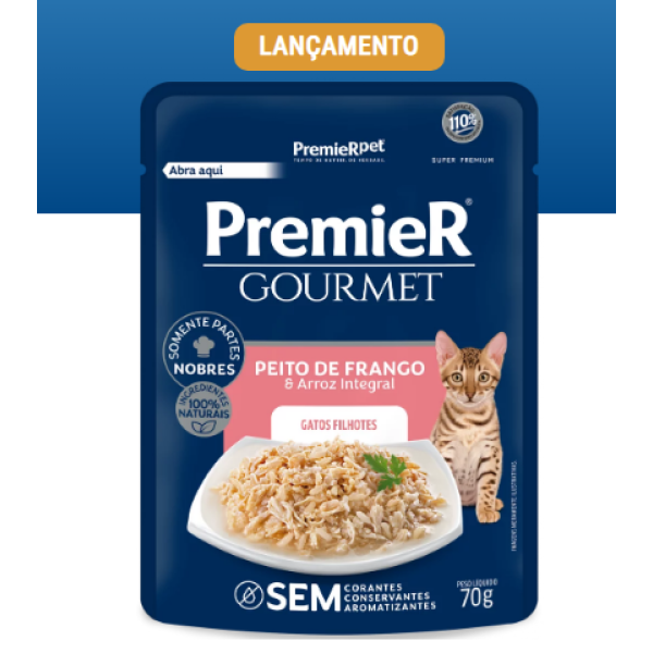 Ração Úmida Premier Gourmet Gatos Filhotes Sabor Peito de Frango e Arroz Integral 70g