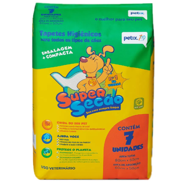 Tapete Higiênico Super Secão 80x60 cm Com 7 Unidades