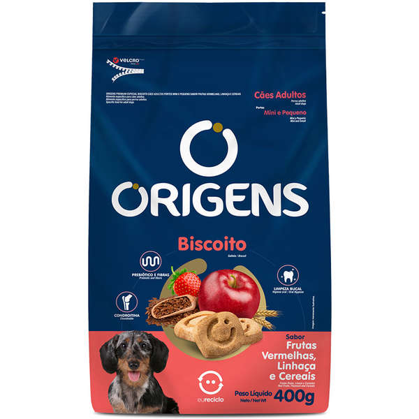 Biscoito Origens Para Cães Adultos De Porte Mini e Peq Sabor Frutas Verm, Linhaça e Cereais 400G