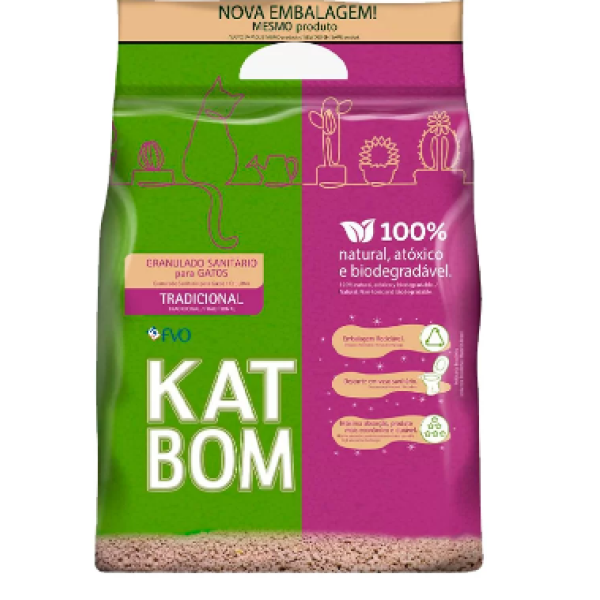 Areia Higiênica Biodegradável Katbom Tradicional Para Gatos 3 Kg