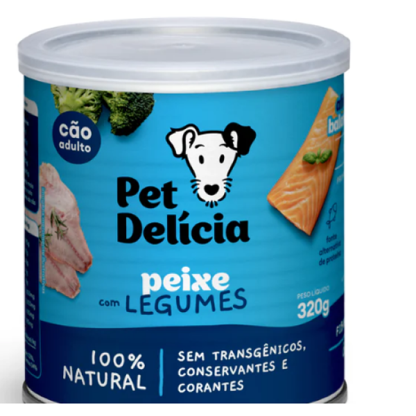 Ração Úmida Lata Pet Delícia Peixe Com Legumes Para Cães 320G
