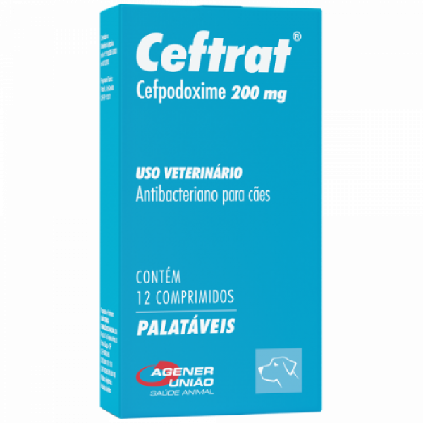 Antibiótico Ceftrat 200 mg Para Cães Com 12 Comprimidos