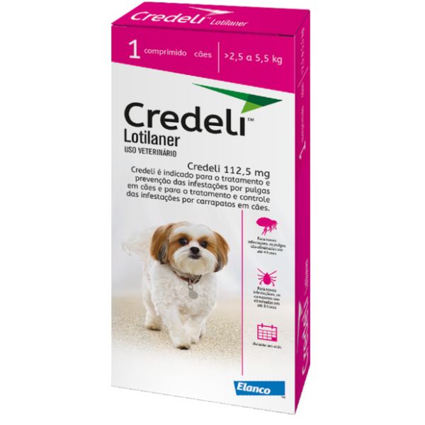 Antipulgas e Carrapatos Credeli 112,5 Mg Para Cães 2,5 a 5,5 Kg Com 1 Comprimido