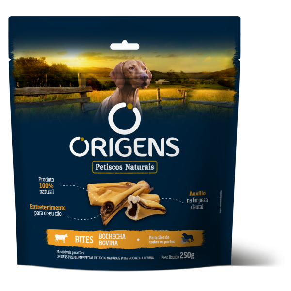 Petisco Natural Bites Bochecha Bovina Origens Para Cães 250G