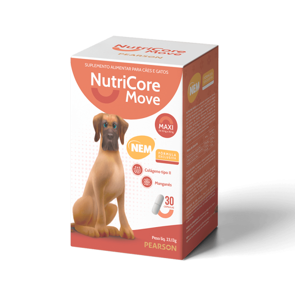 NutriCore Move contém em sua formulação exclusiva o NEM (membrana da casca do ovo) que promove elasticidade e lubrificação nas articulações, facilitando a locomoção dos pets com problemas relacionados a senioridade e doenças crônicas.