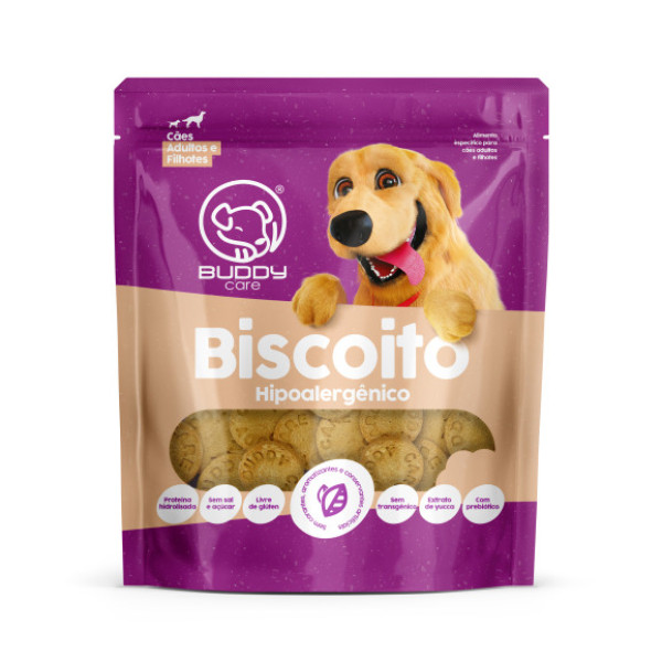 O Biscoito Cães Alérgicos Com Proteína Hidrolisada 150g Buddy é a melhor escolha de petisco para cães alérgicos. Indicado para filhotes e também para cachorros adultos, a linha Buddy Care trouxe dessa vez uma alternativa de alimento com proteína hidrolisada, livre de transgênicos, corantes e conservantes artificiais. Saboroso e equilibrado nutricionalmente, o Biscoito Cães Hipoalergênico Buddy possui prebiótico mantendo a flora intestinal saudável.