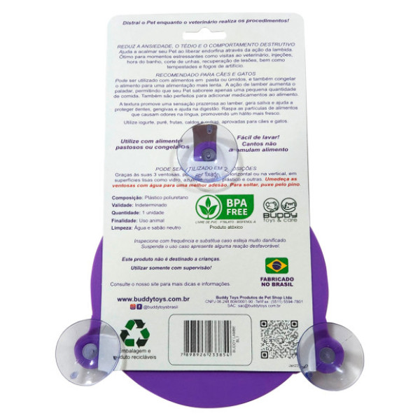 A textura do Buddy Lambe devido aos pinos, promove uma sensação prazerosa ao lamber, que gera saliva, ajudando a proteger os dentes, gengivas, além de auxiliar na digestão. Também raspa as partículas de alimentos que causam odores na língua, promovendo um hálito mais fresco para seu pet.