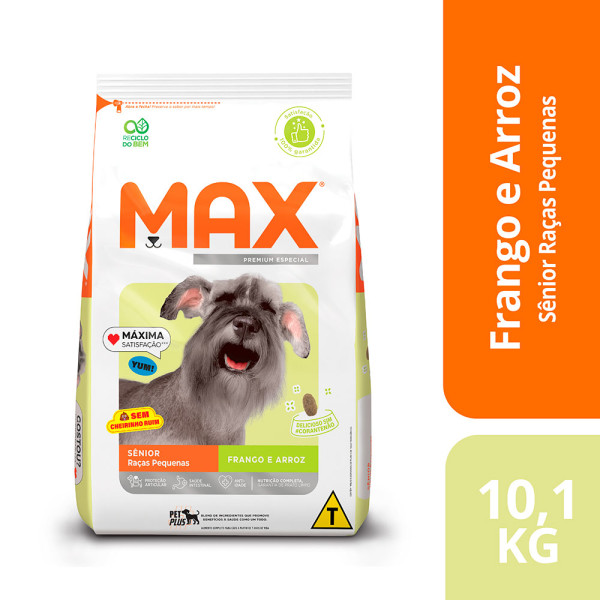 Ração Max Para Cães Sênior De Porte Pequeno Sabor Frango E Arroz 10,1KG