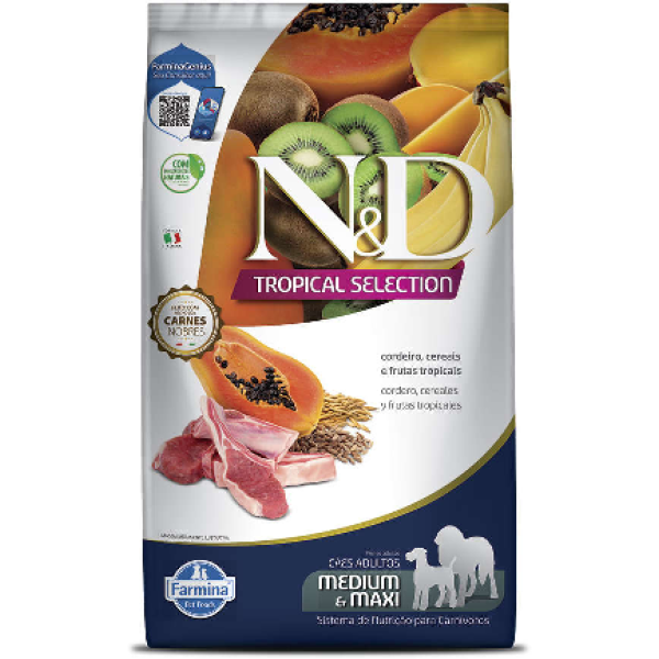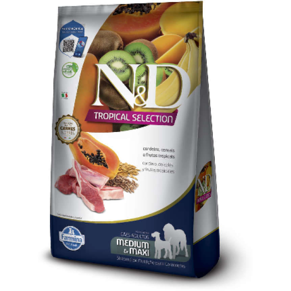 Ração N&D Tropical Selection Cordeiro, Cereais e Frutas Tropicais Para Cães Adultos Raças Médias e G