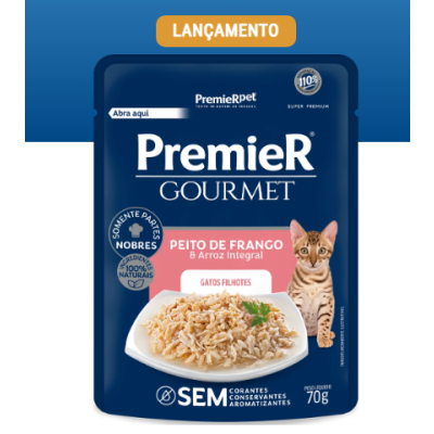 Ração Úmida Premier Gourmet Gatos Castrados Sabor Peito Frango e Arroz Integral 70G