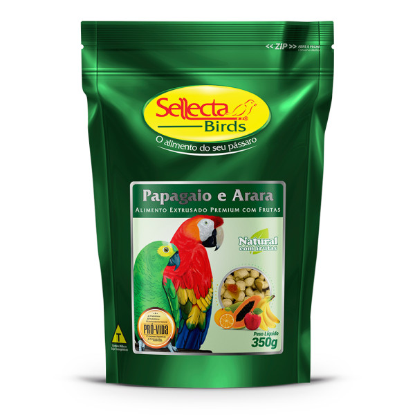 Ração Extrusado Com Frutas Sellecta Para Papagaio e Arara 350G