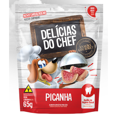 Carne mecanicamente separada de frango, proteína de soja*, farinha de arroz, farinha de víscera de frango, farelo de trigo, fécula de mandioca, glicerina, gelatina, hidrolisado de fígado de frango, cloreto de sódio (sal comum), açúcar, ácido fosfórico, leite em pó (0,6%), fumaça liquida, corante caramelo, sorbato de potássio e aroma de carne(0,1%). Eventuais substitutivos: miúdos de bovinos. Espécies doadoras dos genes: *Agrobacterium tumefaciens, Arabidopsis thaliana, Bacillus thuringiensis, Streptomyces viridochromogenes.