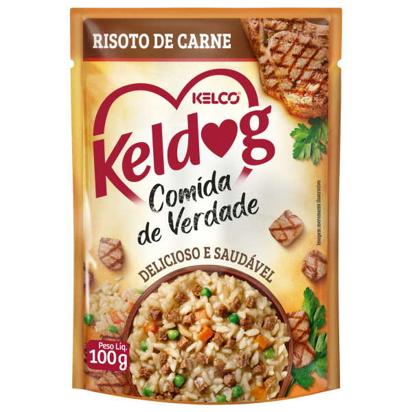 Keldog Comida de Verdade é um alimento saudável e delicioso. Um Risoto de Carne feito com carnes nobres e vegetais selecionados é altamente palatável, como a comida feita em casa. Em formato prático de sachê, une os benefícios e o sabor da carne, ervilha, cenoura, e arroz proporcionando uma refeição nutritiva e deliciosa para o seu cão. Conheça e se surpreenda com essa refeição.