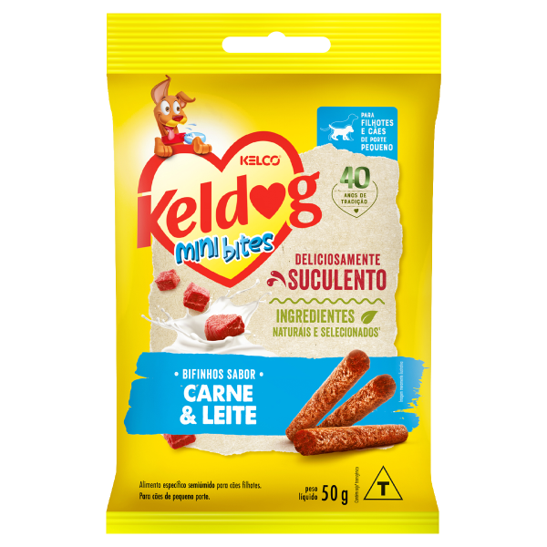 Bifinho Keldog Mini Bites sabor Carne e Leite, além de deliciosamente macio e suculento agora com novo formato! Proporcionando mais facilidade nos momentos de afeto e educacionais no dia a dia. Cada mordida é uma explosão de sabor e alegria. Feito com ingredientes naturais e cuidadosamente selecionados. É o petisco ideal para mantê-lo ativo e saudável.