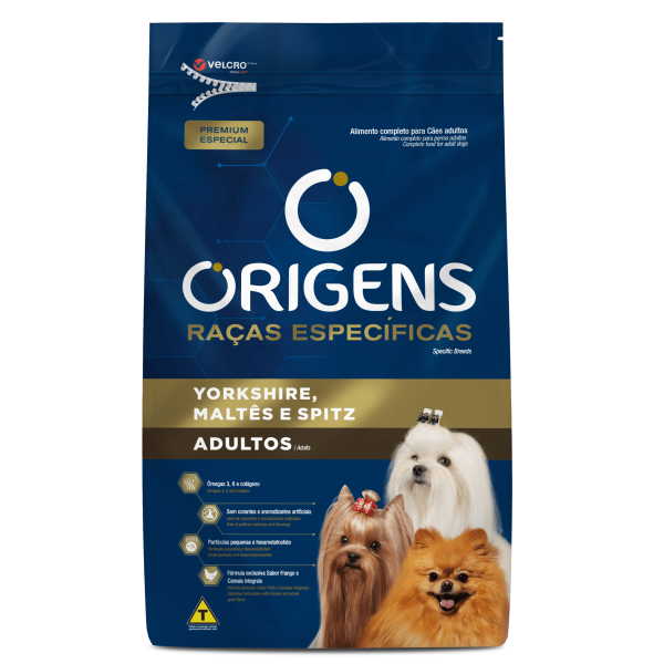 Origens Raças Específicas é uma linha de alimentos Premium Especial para raças específicas que nutre o que há de melhor: o amor. Promover saúde e prazer a cada refeição é antes de tudo um ato de carinho, que estreita laços e prolonga os dias de alegria, amizade e amor incondicional entre tutores e seus cães. Origens Raças Específicas Yorkshire, Maltês e Spitz não contém corantes e aromatizantes artificiais e possui uma nutrição específica para cães adultos das raças Yorkshire, Maltês e Spitz.