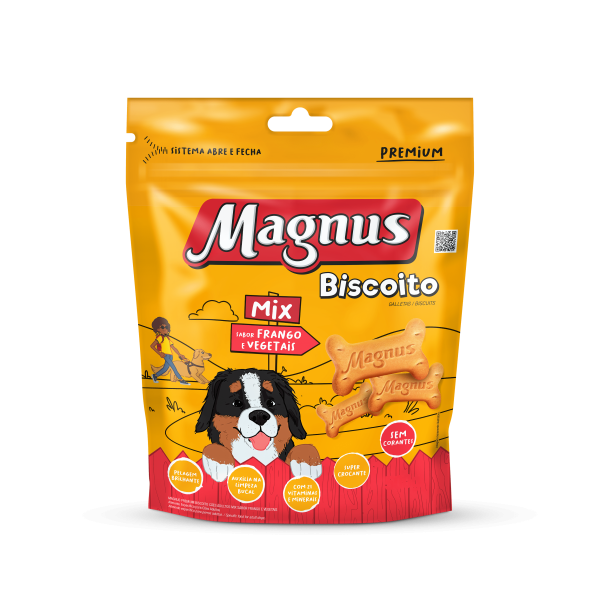 Magnus Biscoito Mix Cães Adultos é um biscoito especifico para cães de todos os portes, elaborado com ingredientes especialmente selecionados que proporciona um sabor inigualável, além de auxiliar na limpeza bucal, Pode ser oferecido ao seu cão como demonstração de carinho, em momentos de diversão ou como recompensa em treinamentos.