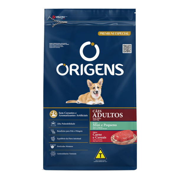 Ração Origens Para Cães Adultos De Porte Mini e Pequeno Sabor Carne Com Cereais 1Kg