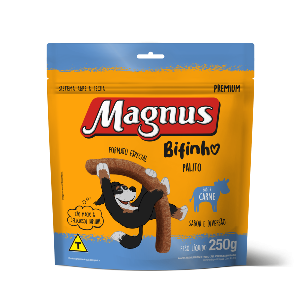 Magnus Bifinho Palito Sabor Carne é indicado para cães adultos de todos os portes. Aproveite os momentos de diversão e alegria com o seu melhor amigo. Ofereça para ele Magnus Bifinho Palito!