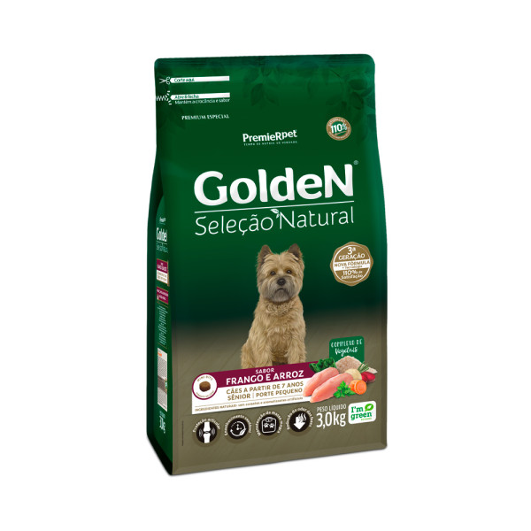 Ração Golden Seleção Natural Para Cães Adultos Porte Pequeno Sênior Sabor Frango e Arroz 3 Kg