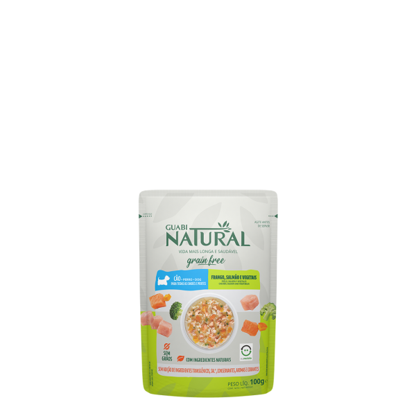 Ração Úmida Sachê Guabi Natural Grain Free Para Cães Adultos Sabor Frango, Salmão E Vegetais 100G