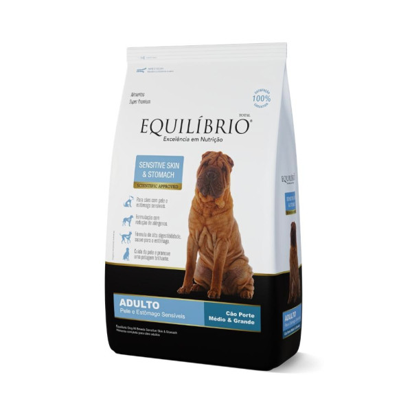 Alimento completo para cães adultos com tendência a irritação de pele, coceira e com estômagos sensíveis.
