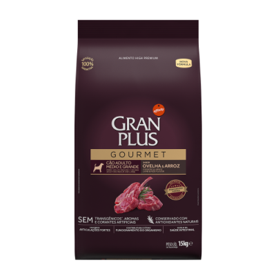 Ração Gran Plus Gourmet Para Cães Adultos de Porte Médio e Grande Sabor Ovelha 15 KG