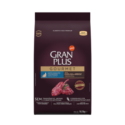 Ração Gran Plus Gourmet Para Gatos Adultos Castrados Sabor Ovelha 10,1 KG